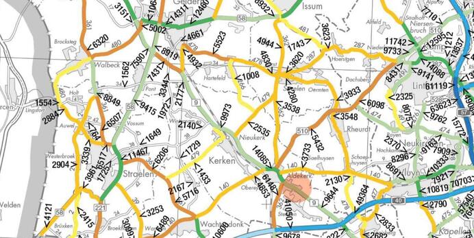 Die Belastungen der Anwohner in Aldekerk, an der Straße der B9, liegen laut „Verkehrsstärkenkarte 2015“ siehe Straßen NRW, irgendwo zwischen 9.600 und 14.000 Kraftfahrzeugen täglich. An der B221 in Straelen-Broekhuysen liegen diese deutlich darunter.