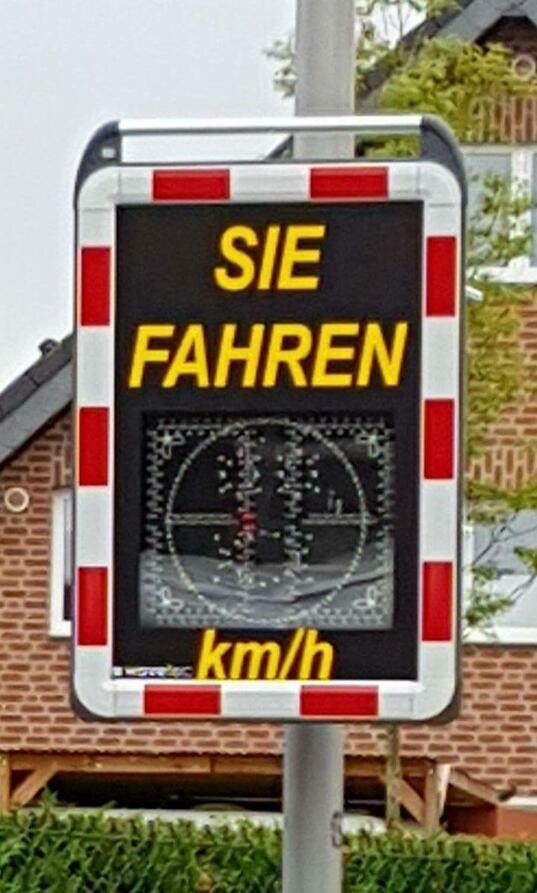 Bei Einfahrt in den Ort blinkt auf dem Display ein grüner Smiley auf, verhalten sie sich vorschriftsmäßig, andernfalls zeigt sich ein trauriges rotes Gesicht.