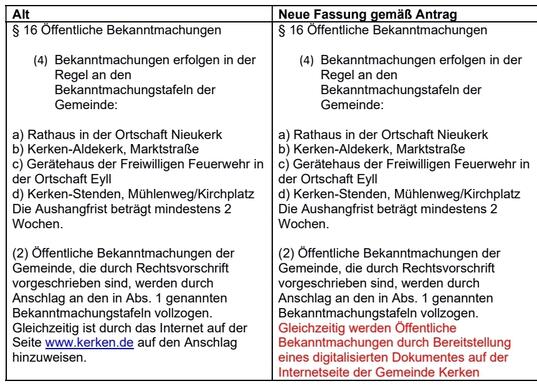 Bisher wurde auf der Homepage der Gemeinde lediglich auf den erfolgten Anschlag der durch Rechtsvorschrift vorgeschriebene Bekanntmachungen hingewiesen. Wir bitten darum, den Bürgern der Gemeinde, die vollständige Bekanntmachung in digitaler Form als Link auf der Startseite der Homepage zur Verfügung zu stellen. Dies sollte im Zeitalter der Digitalisierung eine Selbstverständlichkeit darstellen.