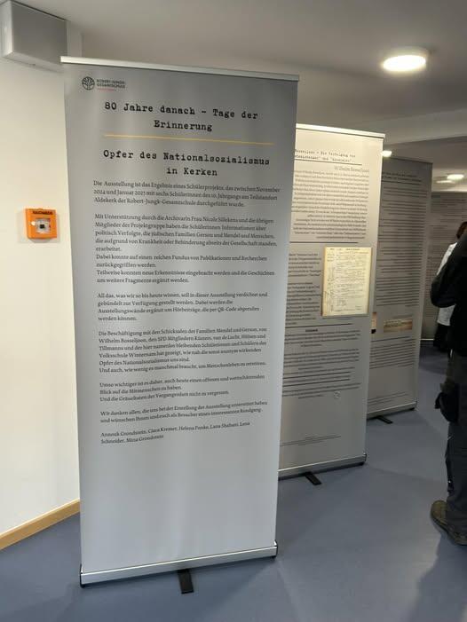 Eine beeindruckende Ausstellung zum Thema Nationalsozialismus wurde heute in der Robert-Jungk-Gesamtschule eröffnet. Ein Besuch der Ausstellung lohnt sich, außerdem gibt es weitere Veranstaltungen die man auf der Webseite unserer Gesamtschule findet.